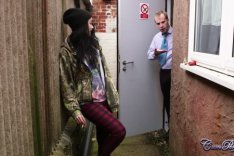 Alessa really doesn't give a shit. Her Probation Officer is looking everywhere for her and eventually finds her having a fag in the alley. He pulls her back into the office and explains the facts of life to her in no uncertain terms. She is badly dressed and he explains that she will "go down" if she...